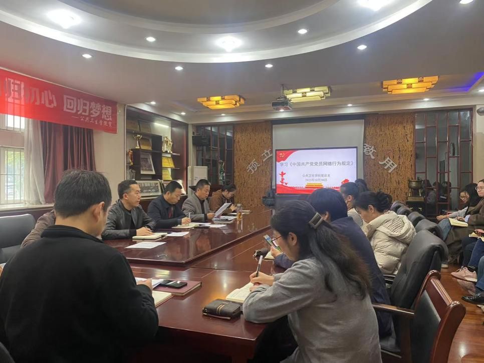 为深入贯彻落实全面从严治党战略部署,进一步加强师德师风建设,规范教职工网络行为,10月30日,公共卫生学院组织全体教职工集中学习《中国共产党党员网络行为规定》。本次学习会由学院党总支书记张东宁主持。